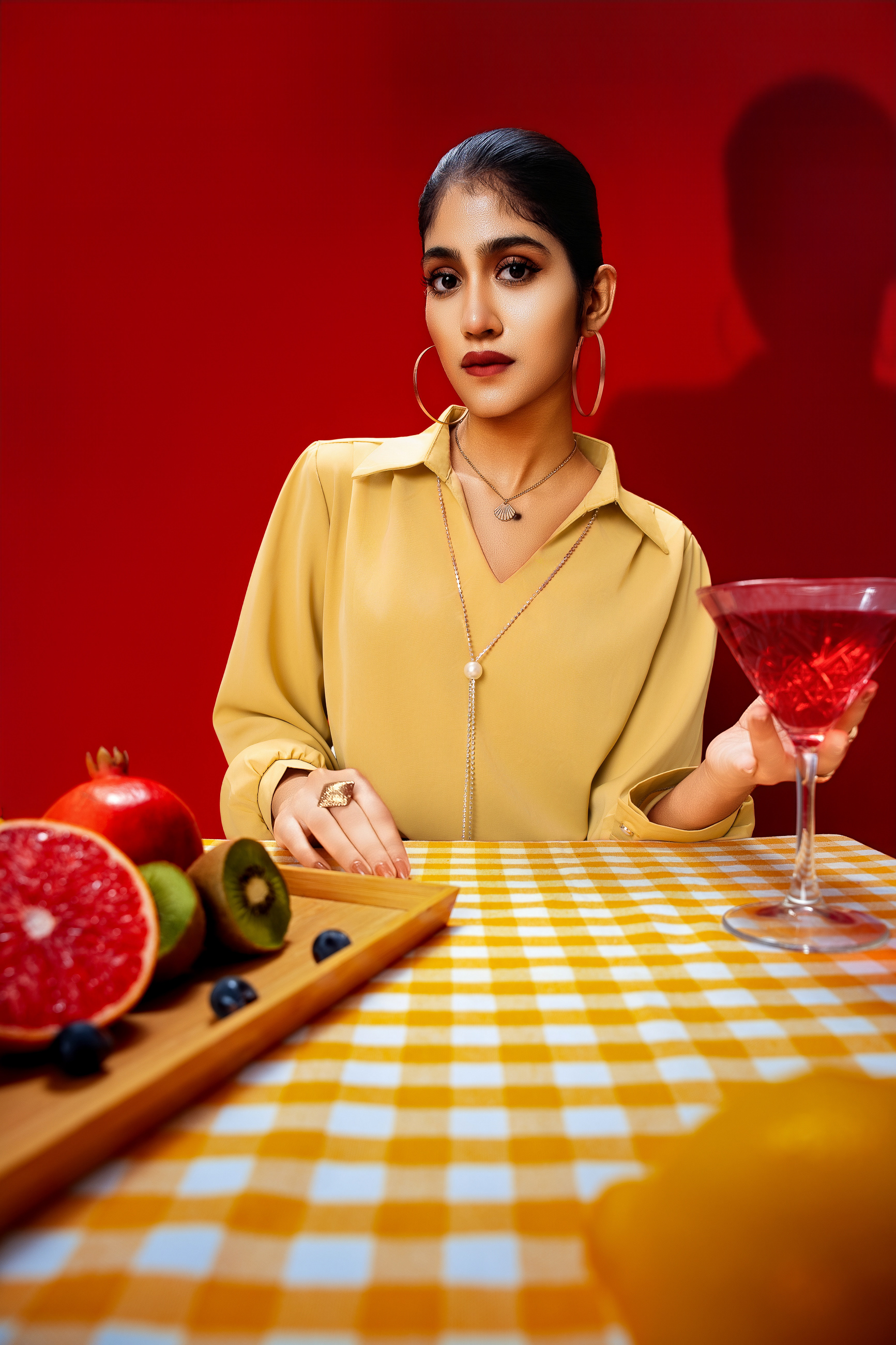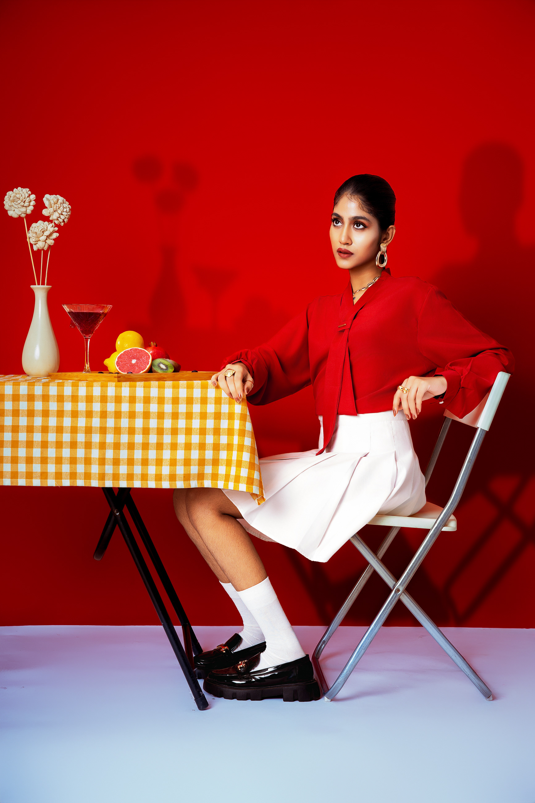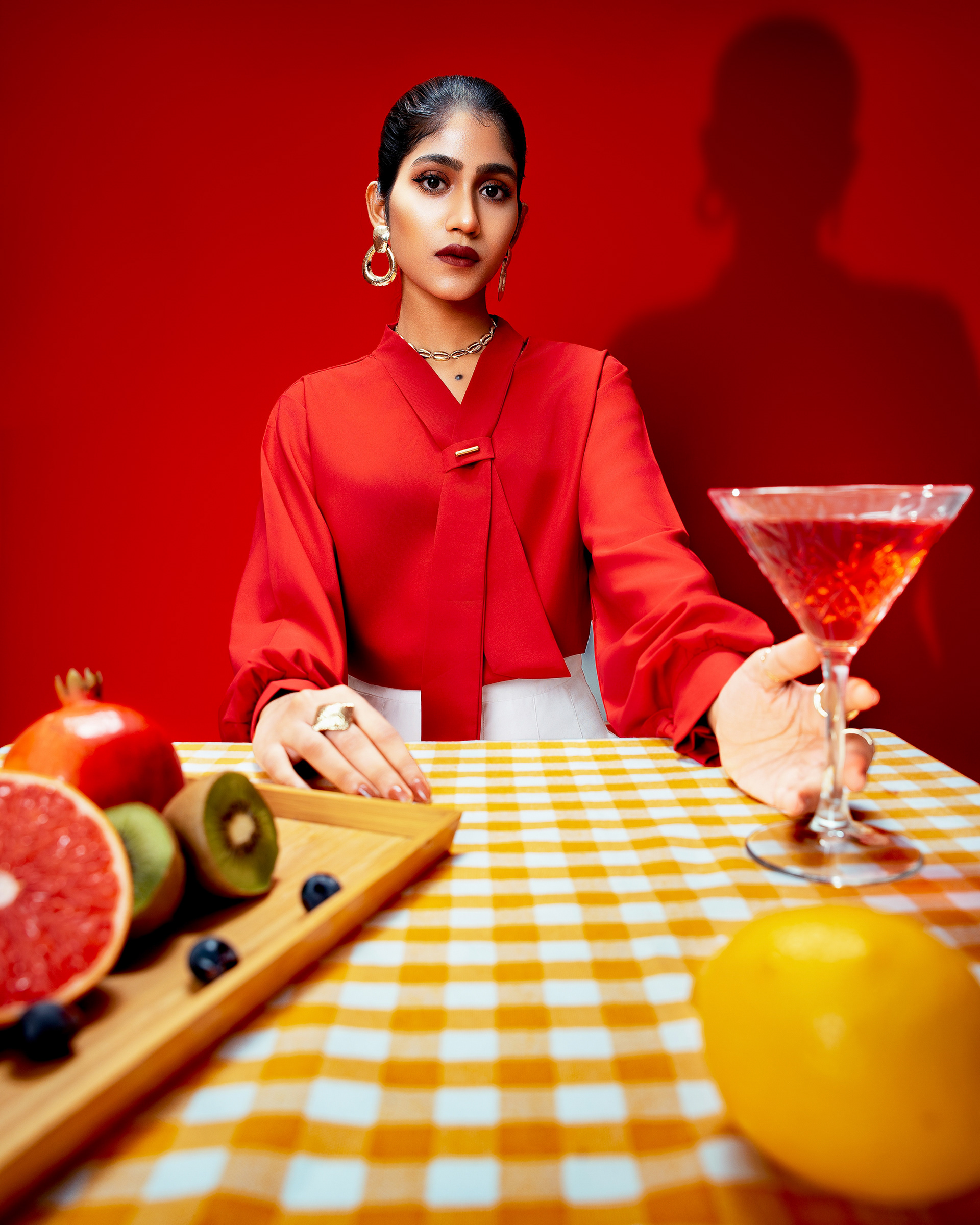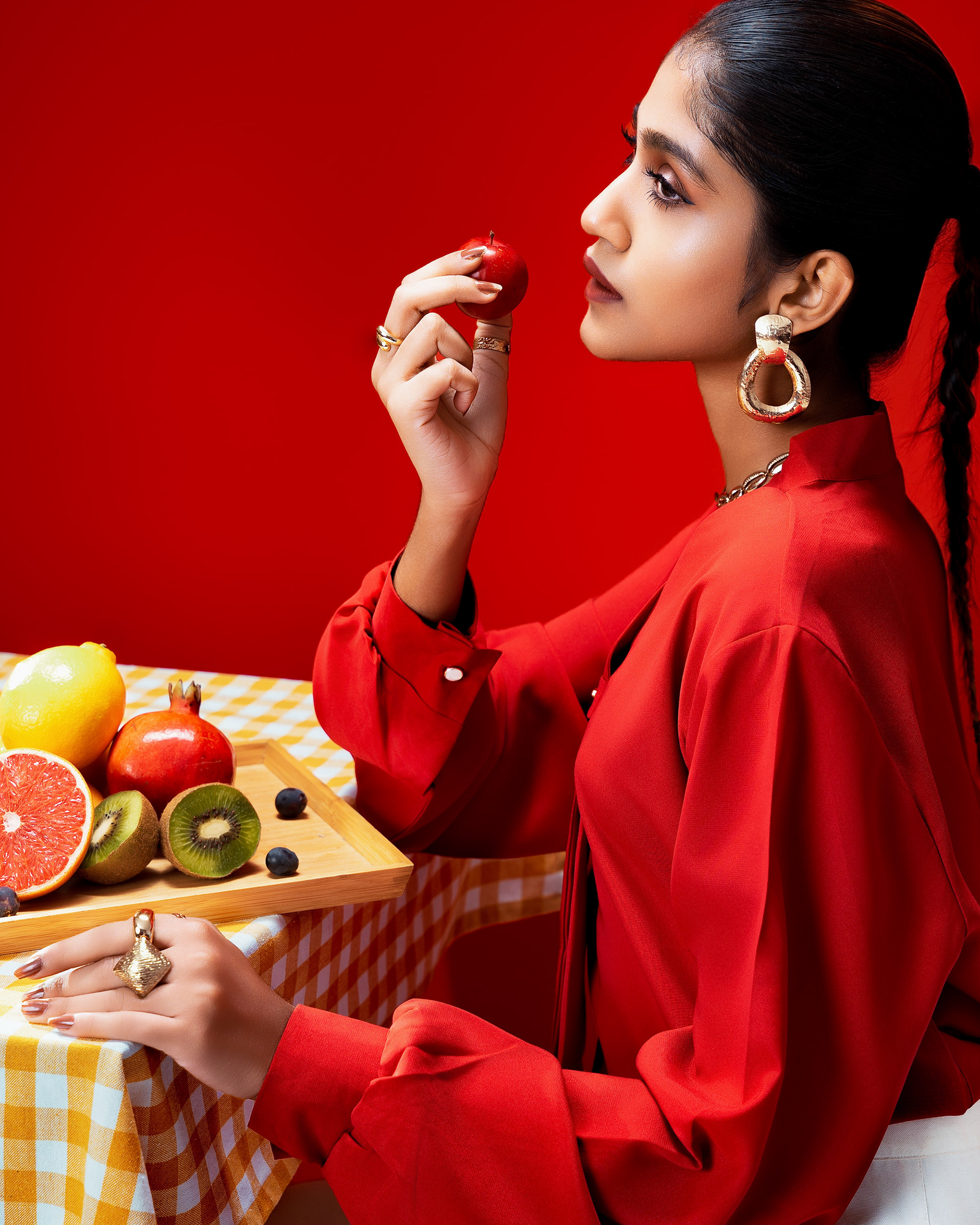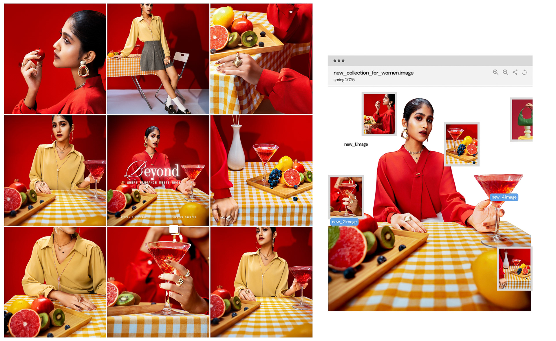 This project explores a bold expression of modern femininity through color, texture, and composed stillness. Set against a rich red backdrop, the collection brings together fluid silhouettes and refined styling, creating a visual narrative that feels confident, playful, and self assured. The use of vibrant hues, sculptural accessories, and carefully arranged elements introduces a sense of contrast between softness and strength. Everyday moments are elevated through thoughtful details, where posture, gaze, and gesture become central to the story. The styling balances elegance with ease, allowing the garments to feel expressive without excess.